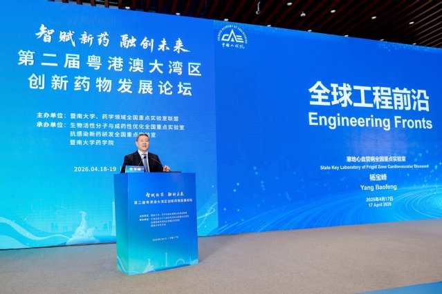 在第二届粤港澳大湾区创新药物发展论坛的大会报告环节,杨宝峰作了题为“2025全球工程前沿”的报告,陈志南作了题为“迈向生物医药5.0时代”的报告,刘良作了题为“中医学‘因时制宜’理论与时间免疫治疗学的新探索”的报告,刘超作了题为“法医微生物研究进展”的报告。